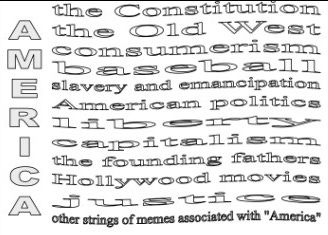 If, for example, we look at the meme chord for "America," we can quickly list a variety of memes and complex sets of memes that contribute to that chord: Constitutional government; the Old West; Consumerism; Slavery and emancipation; American politics; Elections; Liberty; Capitalism; the Founding Fathers; Hollywood movies and television; Justice; Popular music; Baseball; and so on with all other memes associated with “America.”