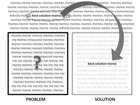 Another example of delimiting memes occurs during problem-solving. The more tightly held one's memes are, the fewer solutions will present themselves. If you think only a hammer will drive a nail, you will not even consider the flat side of the heavy wrench lying nearby. If a group thinks outsiders are untrustworthy, then they will not trust any outsider. The ability to consider solutions "outside the box" and to engage in "lateral thinking" comes about through nonattachment to the "shoulds" and "oughts" of how things work. One must be willing to set aside treasured beliefs in order to perceive memes outside one's own bundle and thereby discover fresh solutions.