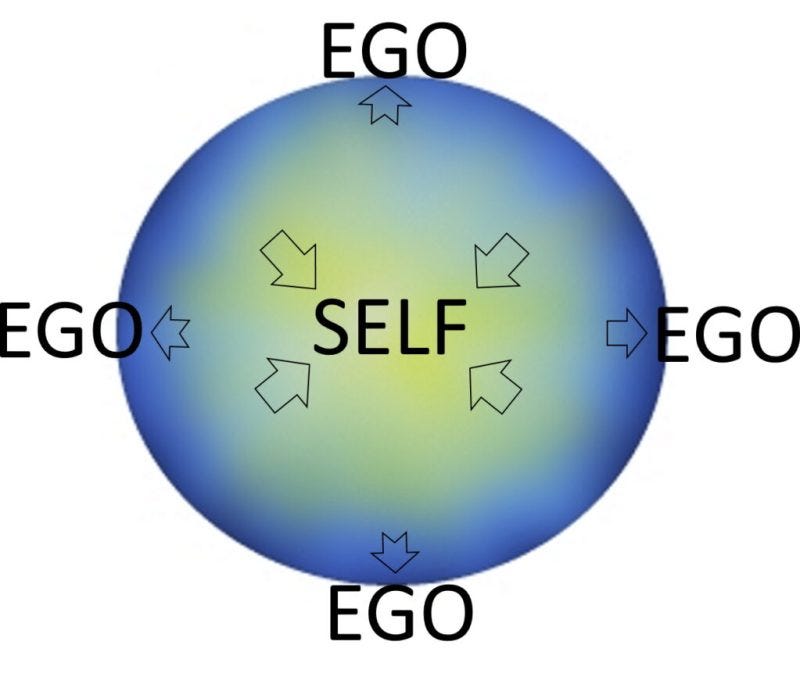 And when the ego is not in alignment with the Self, when the ego has forgotten its origin, like happened to the Demiurge, when the ego has forgotten that it’s not the boss—our boss is our big S Self because that has the direct connection to the emanations of the Father and the Aeons above. Consciousness, life, love, all come from above, and that comes through our Self.